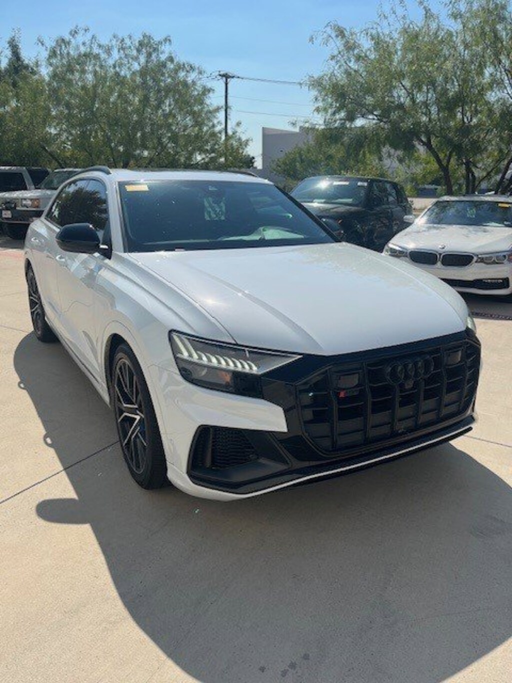 2023 Audi SQ8 4.0T Prestige Glacier White Metallic quattro 4.0L V8 Turbocharged DOHC 32V LEV3-ULEV125 500hp Clean CARFAX. Alu Touch-Sensitive Interior Buttons, Black Dinamica Headliner, Black Optic Package, Black Roof Rails, Contour/Ambient LED Interior Lighting Package, Driver & Passenger Front Seats w/Ventilation, Dual-Pane Acoustic Glass, Executive Package, Extended Leather Package, Front Seat Massage Functions, Head-Up Display, Heated Rear Seats, High-Gloss Black Exterior Elements, Intersection Assist, Power Rear Side Window Sunshades, Power Soft-Closing Doors, Prestige Package, Remote Park Assist Plus, Sports Exhaust Resonator Kit, SQ8 Luxury Package, Traffic Sign Recognition, Wheels: 22 5-V-Spoke Star Design.